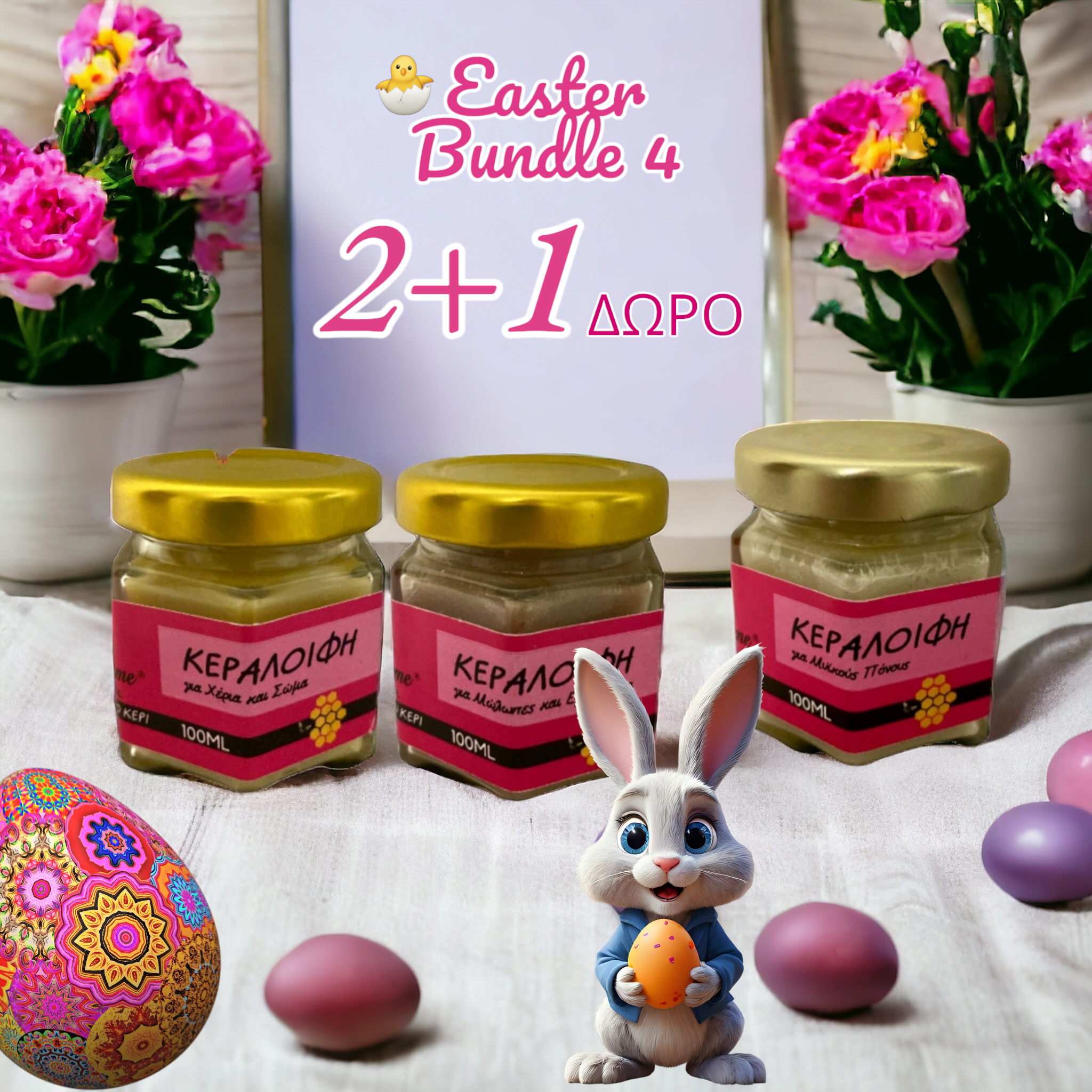 Το Easter Bundle 4 συνδυάζει τρεις κεραλοιφές σε τιμή ευκαιρίας! 3 κεραλοιφές τις επιλογής σας ( αφήστε στα σχόλια της παραγγελίας την επιλογή κεραλοιφών που επιθυμείτε ) σε εκπτωτική τιμή και ΔΩΡΕΑΝ ΜΕΤΑΦΟΡΙΚΑ για ολόκληρη την Ελλάδα!